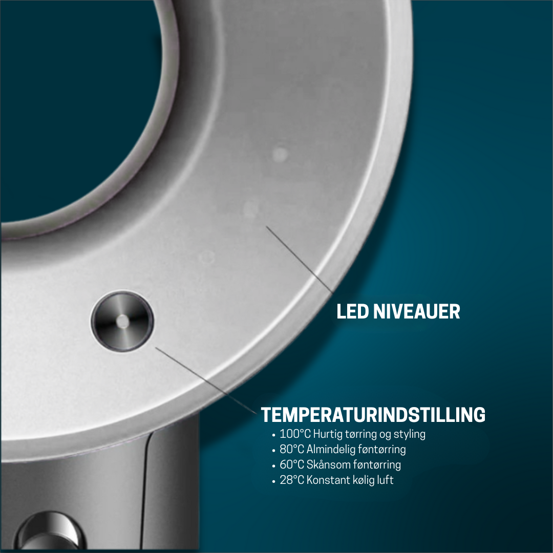HairSonic er udstyret med en digital V9-motor, der kører med imponerende 110.000 omdrejninger pr. minut og genererer en kraftfuld, men kontrolleret luftstrøm, som sikrer hurtig tørring og præcis styling. Dit hår er tørt på ingen tid og klar til den perfekte finish.