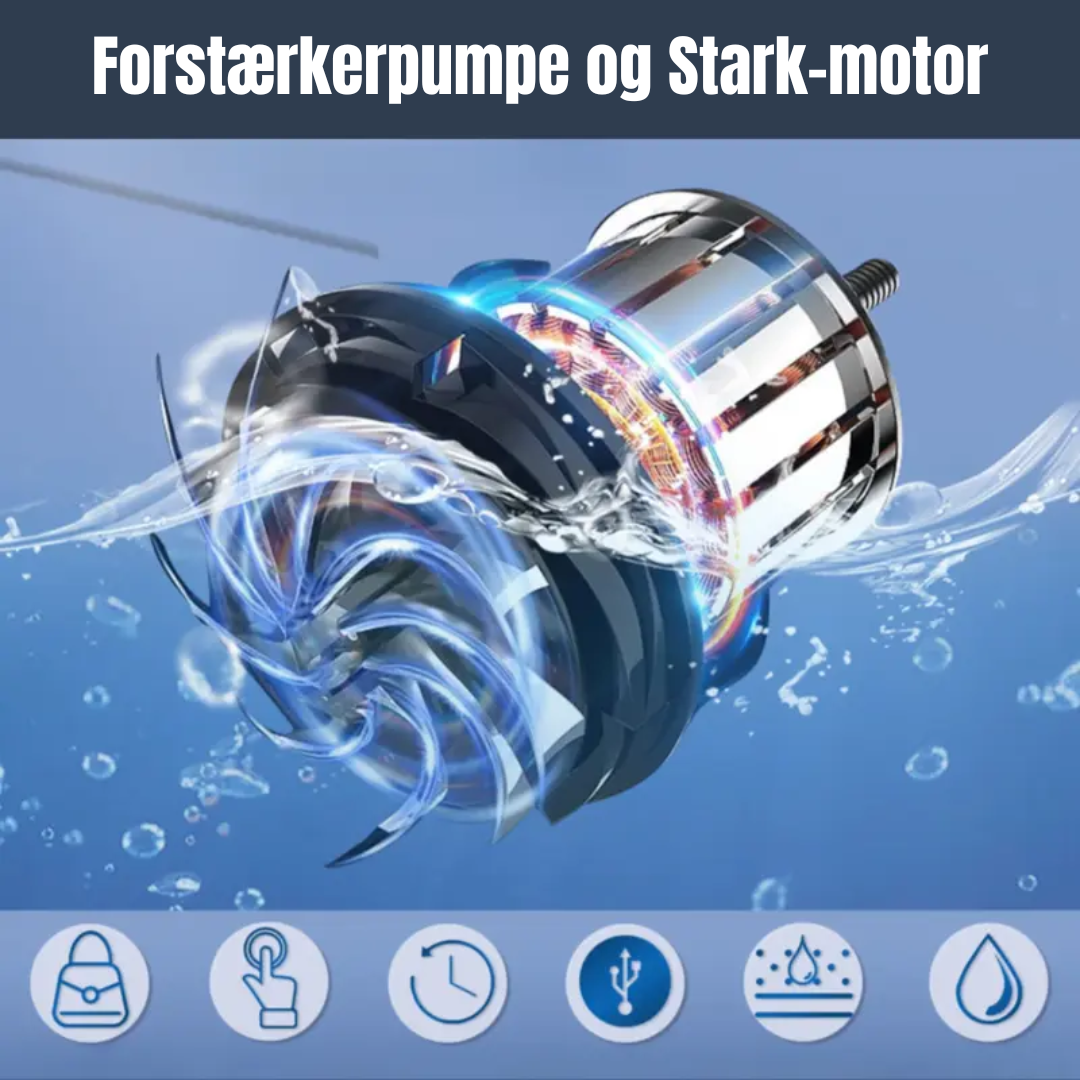 Oplev bekvemmeligheden og alsidigheden ved vores multifunktionelle, bærbare vandpumpe! Perfekt til en bred vifte af anvendelser. Leveres med dyser til brusebad, vanding af planter, rengøring, tømning af båd, hundevask – og alt derimellem.